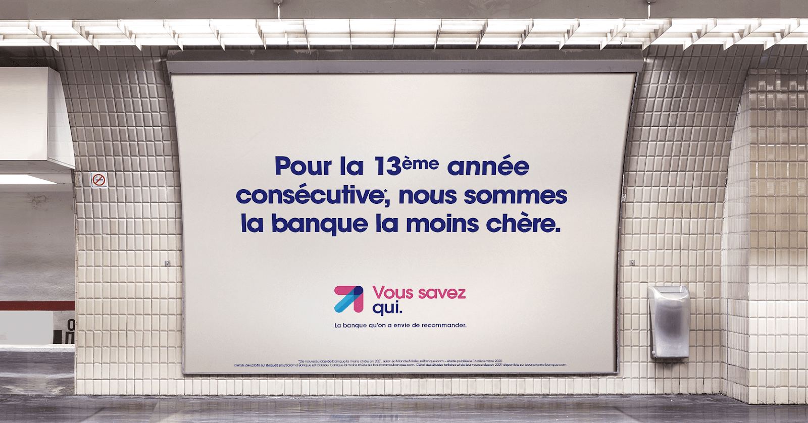 Certaines entreprises font de grandes campagnes publicitaires sans indiquer leur nom, en s’appuyant uniquement sur leur logo. C’est le cas de Boursorama ou du site de rencontre Adopte un mec.